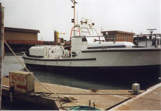 At the dock in Grays Harbor, WA just after receiving the boat from the USCG in 1998.