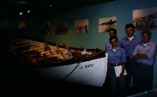 Some of the crew stand next to an ex-USCG 26' whale boat. This boat used to belong to the Ship until 1987. It was given to the museum in Illwaco, WA due to poor structural integrity. It was originally built in 1926 for the USCG.